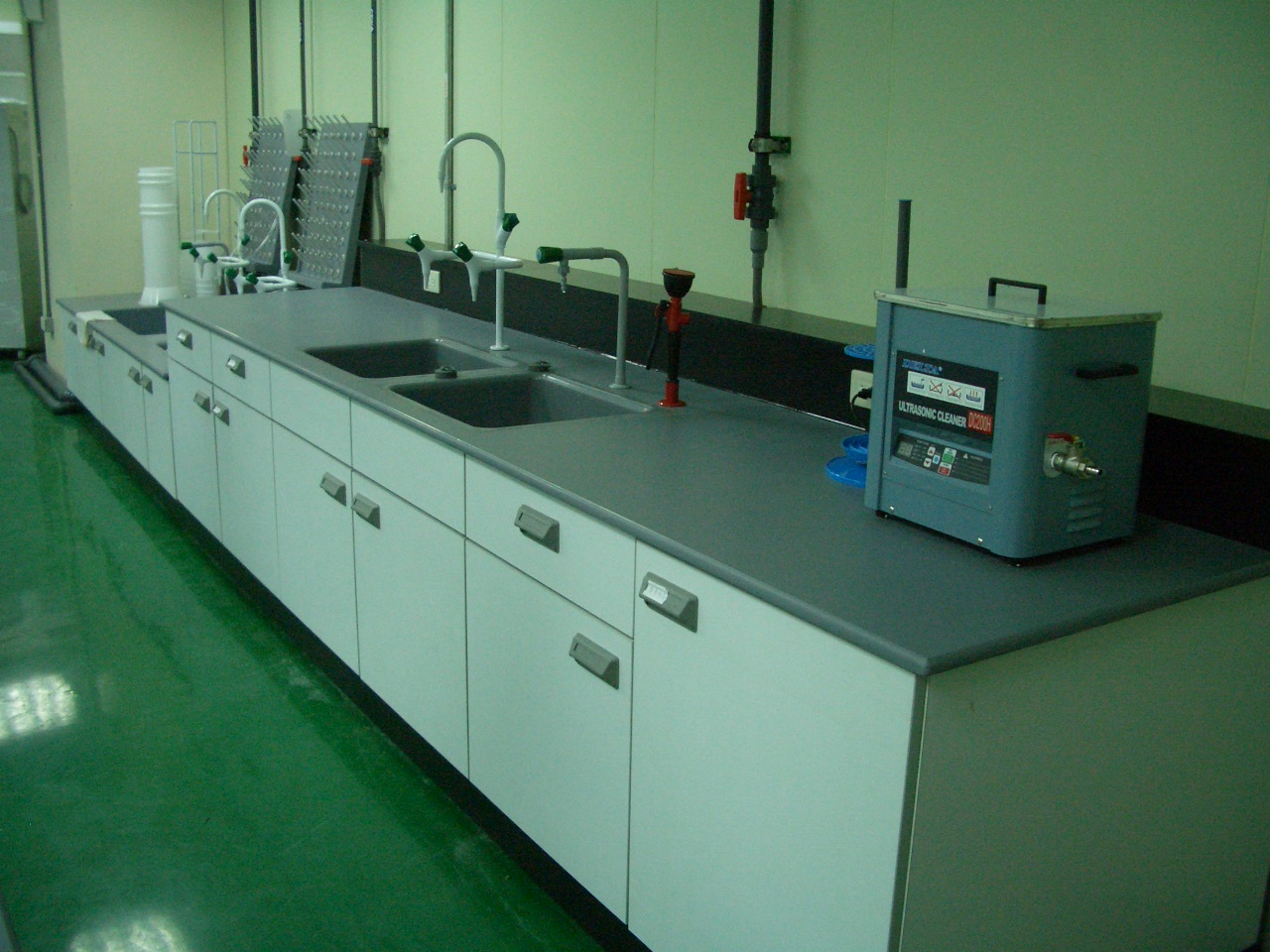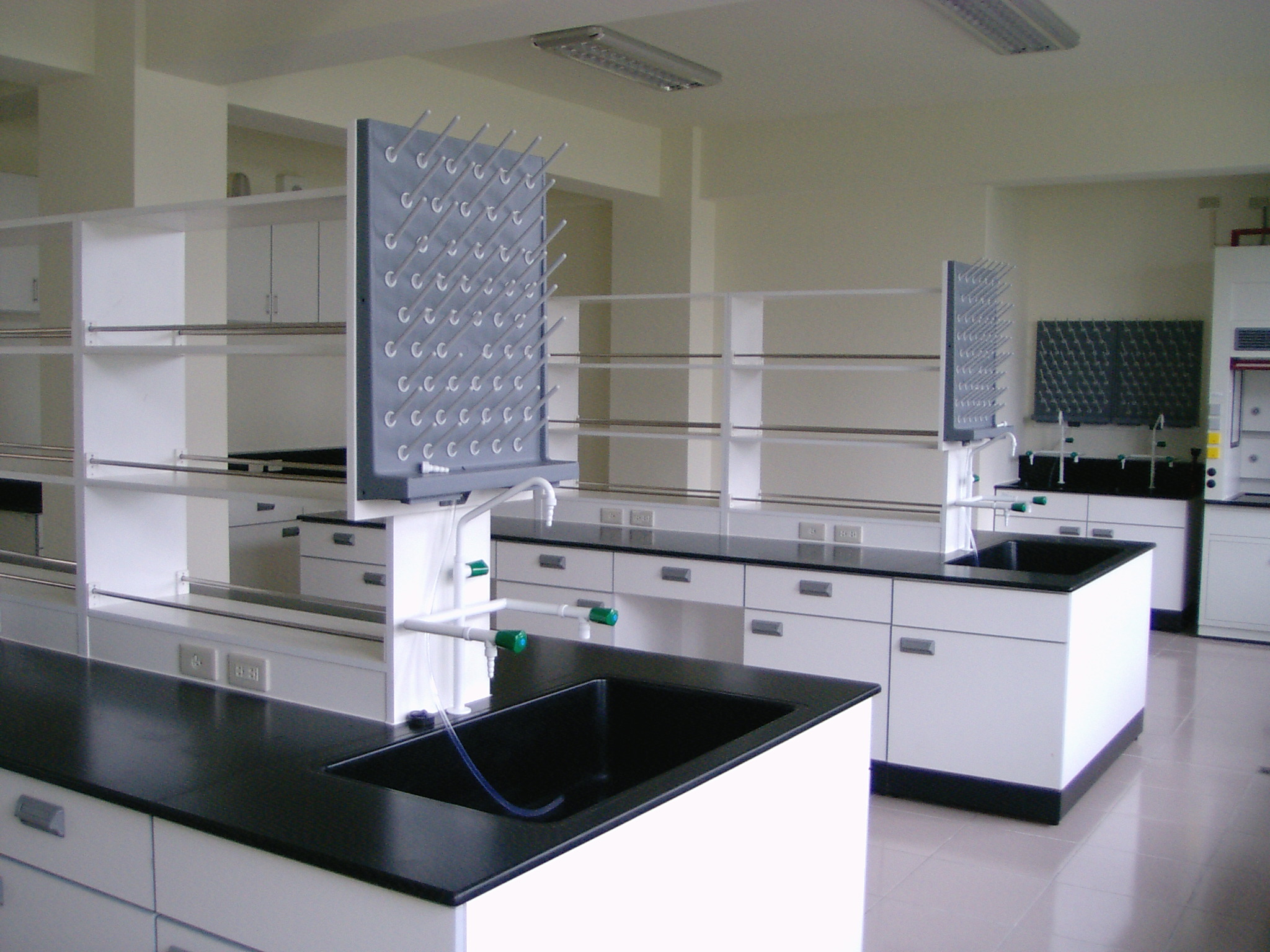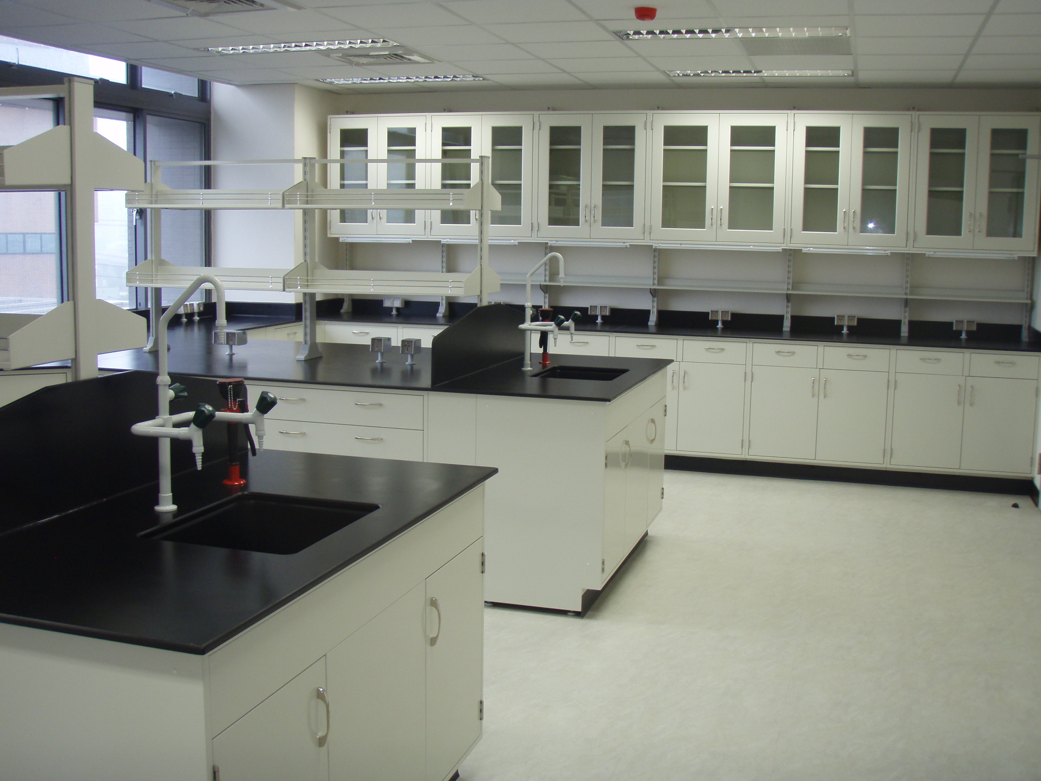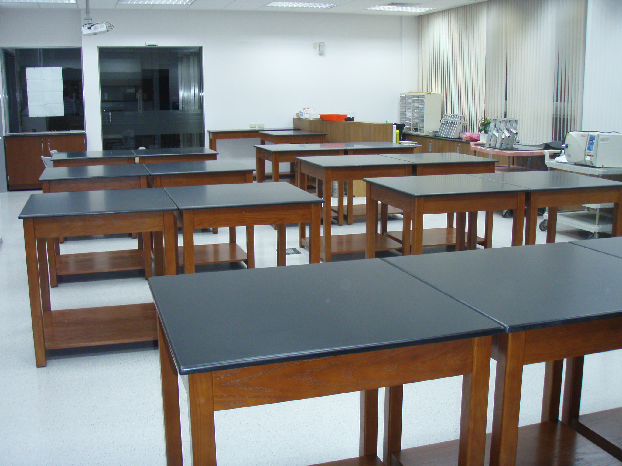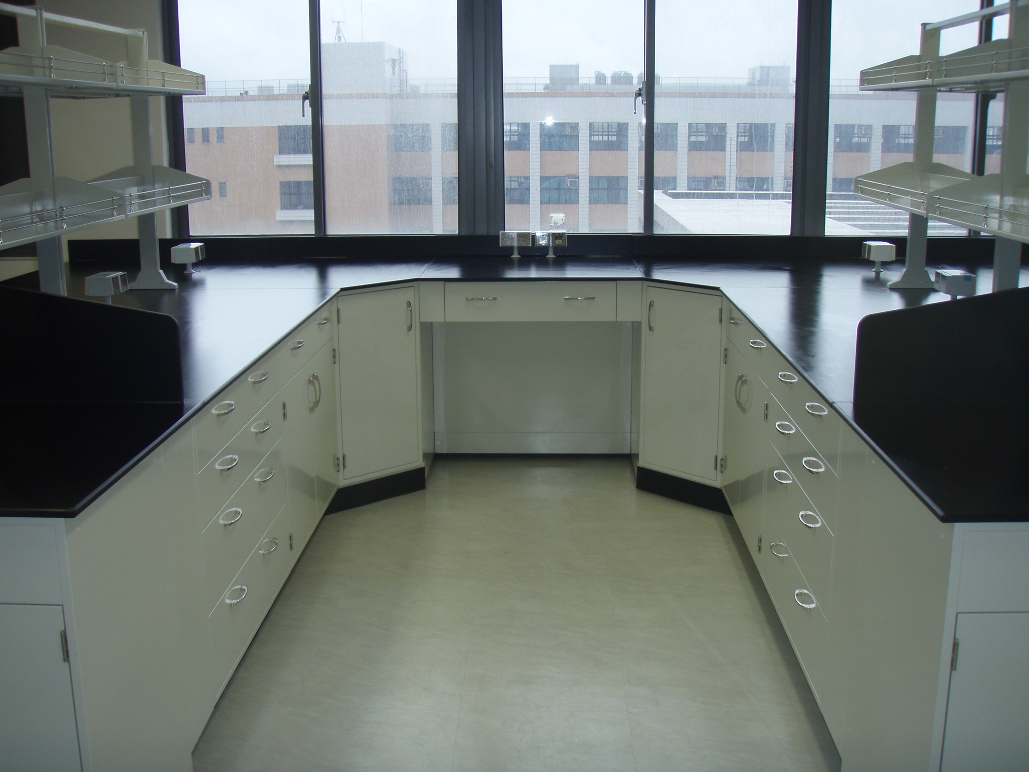 一般實驗室沒有要求潔淨度,可以選擇合板加工製成的木製實驗桌櫃。桌面的選擇常用的有酚醛樹脂(化學板)及環氧樹脂(Epoxy)二種,如果有溫度上的考量,化學板不建議使用,可以選擇Epoxy或陶瓷台面等耐高溫的材質。